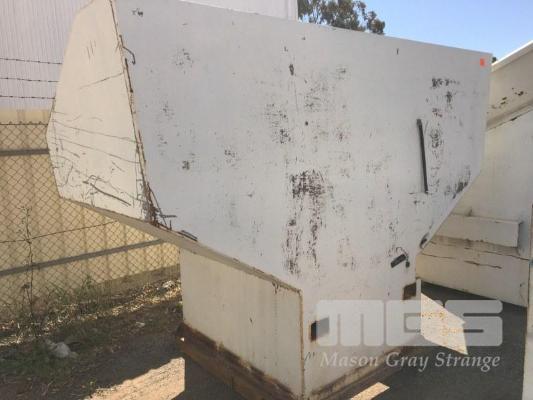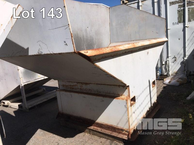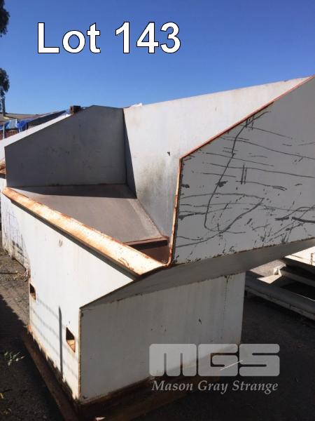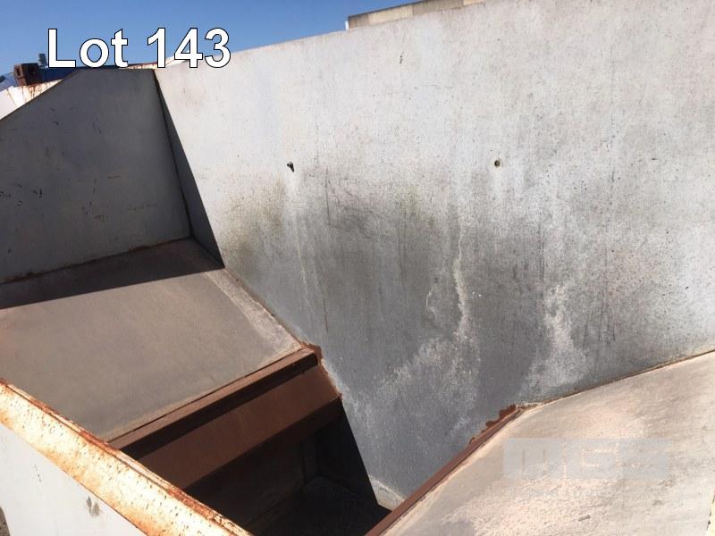 HOPPER CHUTE, HEAVY DUTY STEEL TOP HOPPER SIZE: 2810 (L) x 1390mm (W) BOTTOM CHUTE SIZE: 1140 (L) x 1390mm (W) FITTED WITH FORK POCKETS, 10mm PLATE STEEL CONSTRUCITON TOTAL HEIGHT: 2100mm