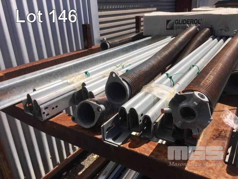 ASSORTED ROLLER & PANEL DOOR COMPONENTS, RAILS, SPRINGS, BRACKETS, ETC,