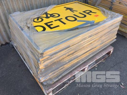 40 x ASSORTED ROAD/FOOTPATH SIGNS, DETOUR, 1 x PALLET