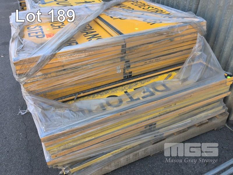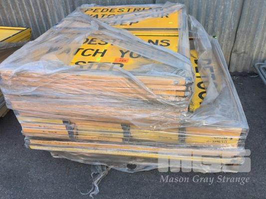 40 x ASSORTED ROAD SIGNS, INC PEDESTRIANS WATCH YOUR STEP, DETOUR, DETOUR AHEAD, ETC, 1 x PALLET