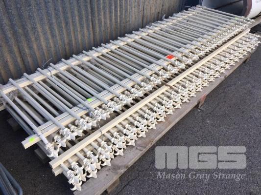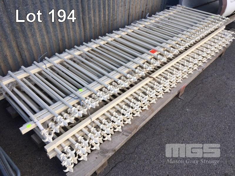 9 x STEEL FENCE PANELS, CREAM TUBULAR WITH DECORATIVE SPIKED TOPS,