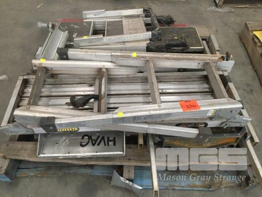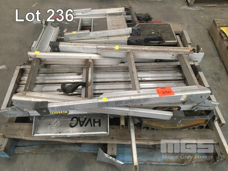3 x STEP LADDERS, 2' & ALLOY TRESTLE PLATFORM, 1 x PALLET