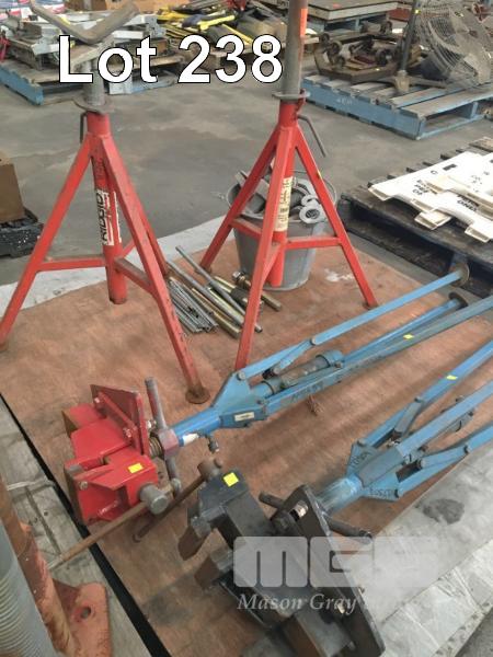 2 x DAWN VICES, 4" ON TRIPOD, 4 SCREW STANDS, 2 RIDGID
