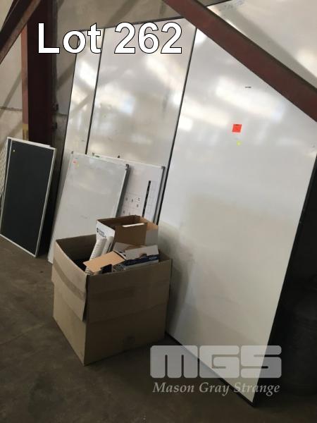 3 x WHITEBOARDS, 240 x 120cm, 2 x 120 x 90cm, 2 x PIN BOARDS, 120 x 90cm & 1 x BOX ASSORTED STATIONERY