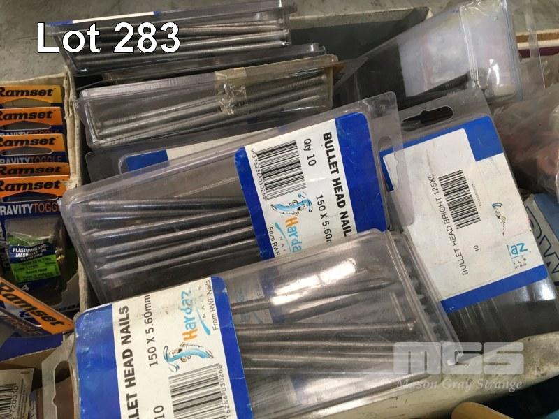 ASSORTED HARDWARE & FASTENERS, DYNA BOLTS, NAILS, SCREWS, ETC