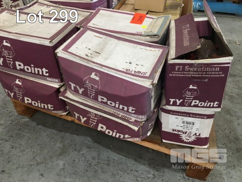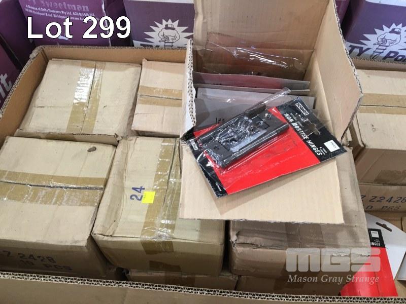 LARGE QUANTITY HEX SCREWS, 14 x 10 x 42 & 14 x BOXES NON MORTISE HINGES, 1 x PALLET