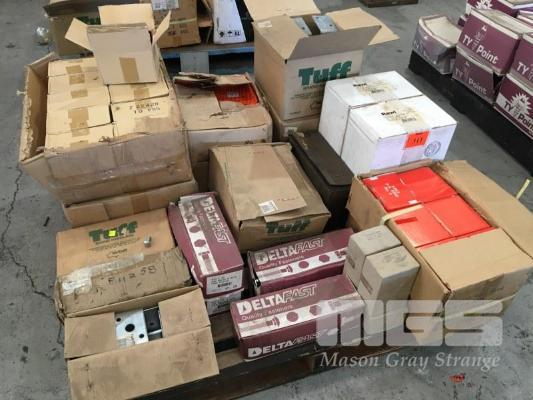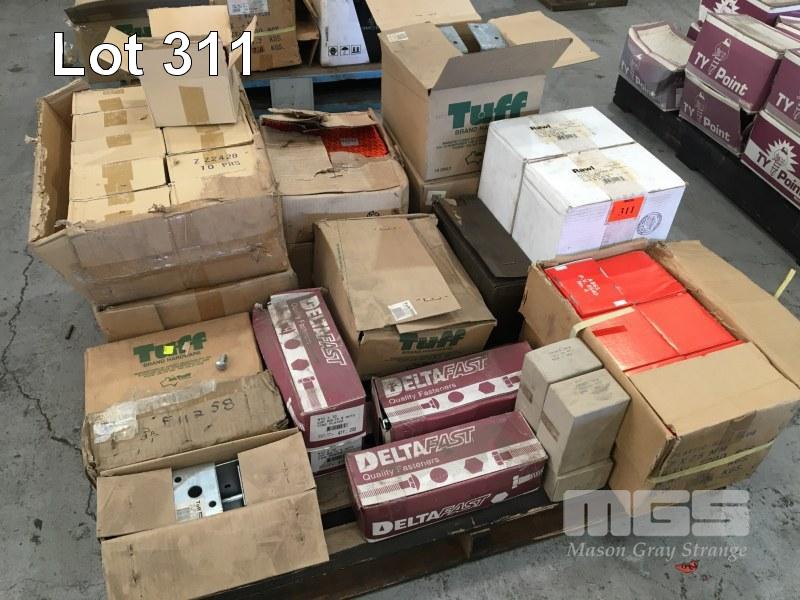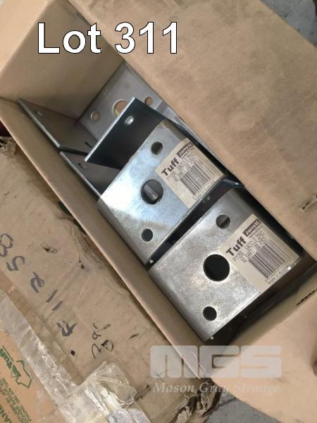 ASSORTED FASTENERS, INC CUP BOLTS & NUTS, WALL PLUGS, GALV LEG POST SUPPORTS, SCREWS, HINGES, ETC