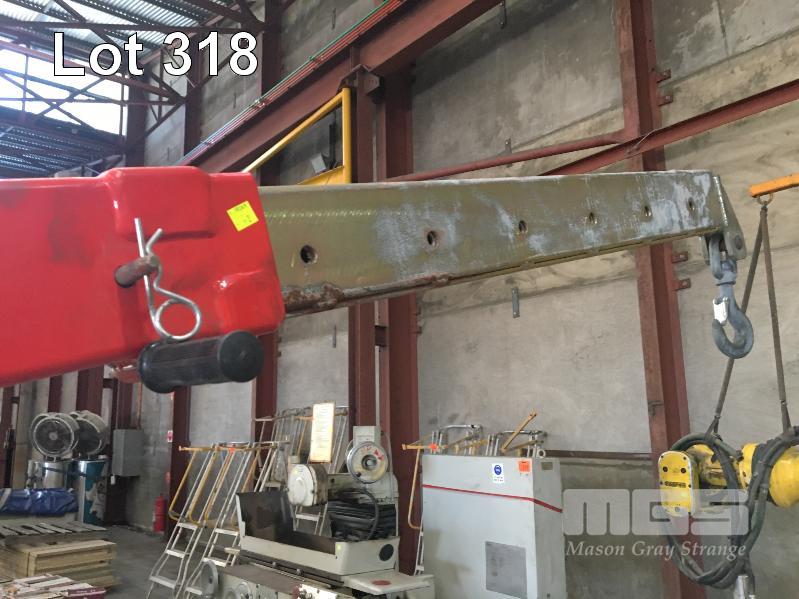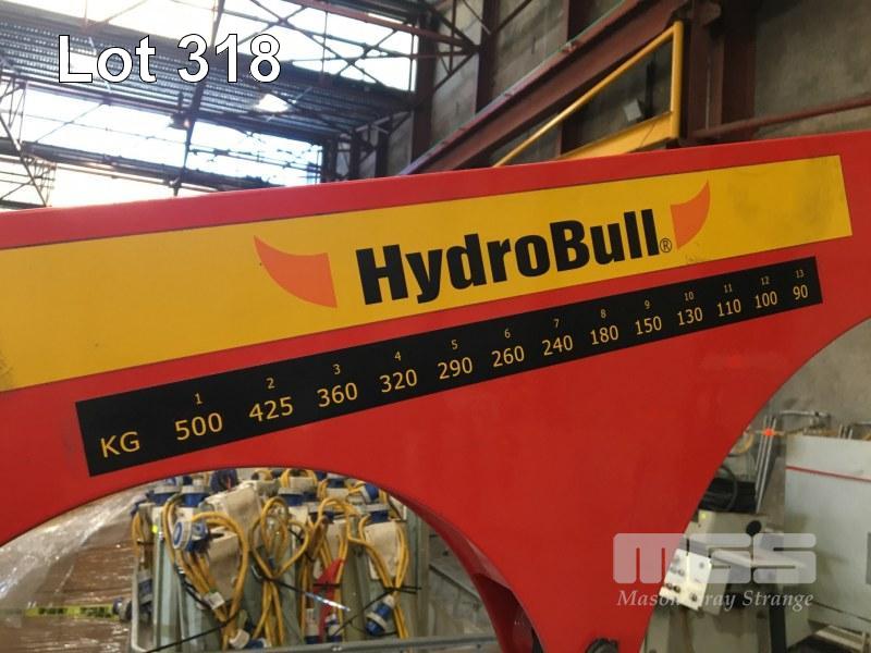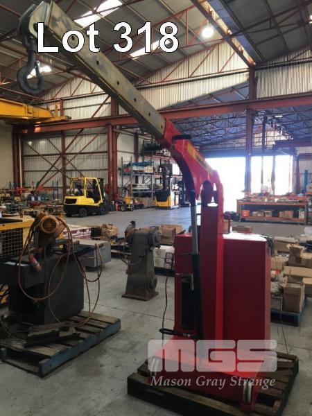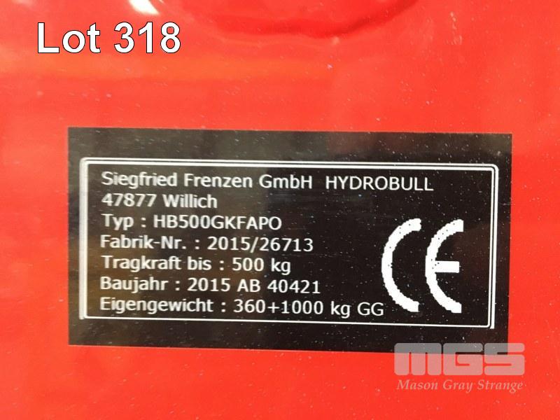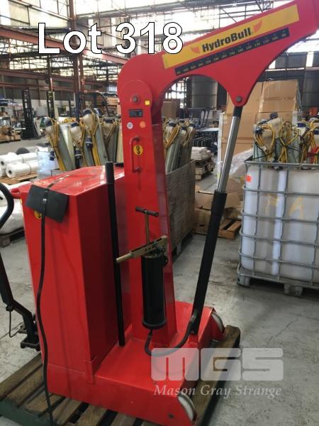 MOBILE COUNTER WEIGHT CRANE, SIEGFRIED FRENZEN MOD: HYDROBULL TYPE: HB500GKFAPO DOM: 2015 HYDRAULIC LIFT (MANUAL PUMP ACTION) MAX LIFT CAP: 500kg TO 90kg AT MAX REACH MAX REACH: 2400mm 3 STAGE TELESCOPIC BOOM MANUAL PUSH, AUTO BRAKING