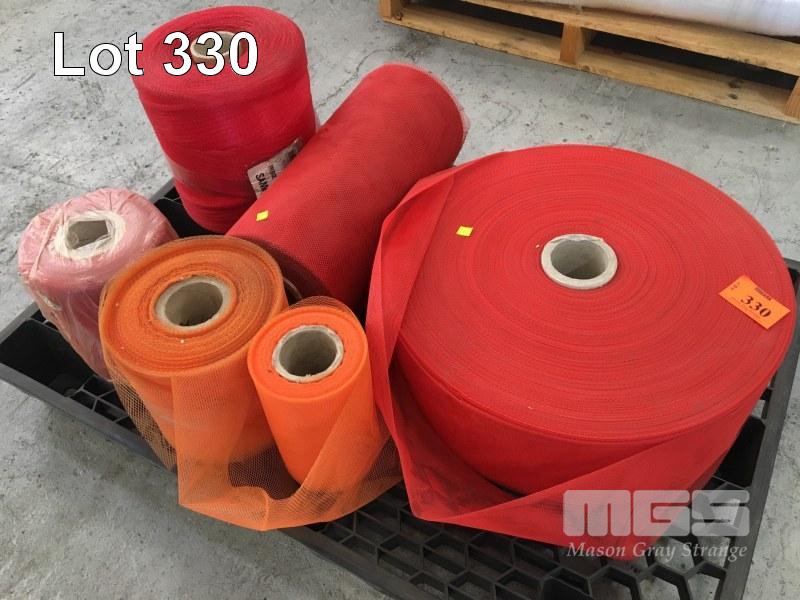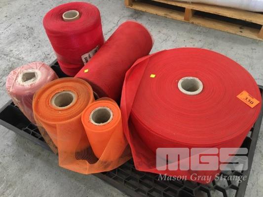 6 x ASSORTED ROLLS RED & ORANGE SYNTHETIC NETTING, NETTING SOCK & FLAT