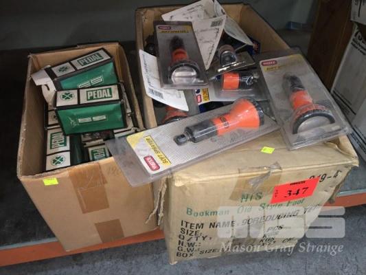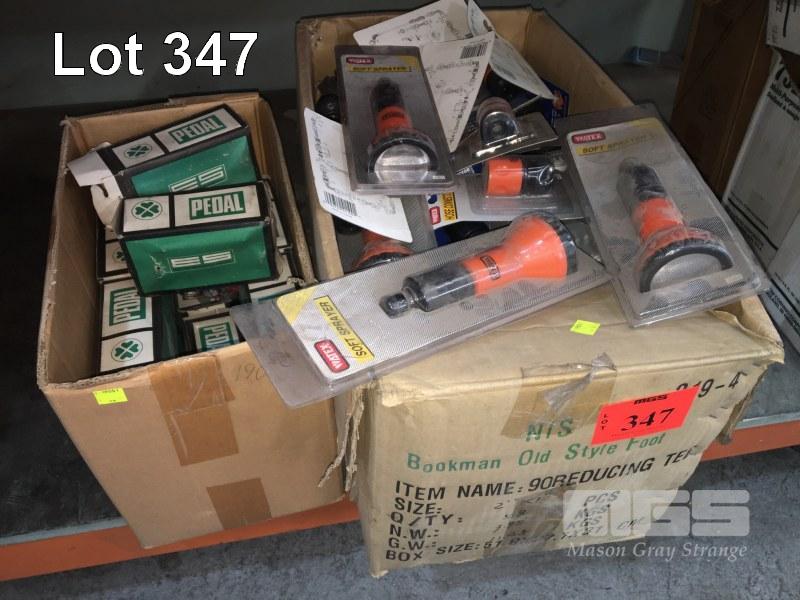 ASSORTED GARDEN HOSE FITTINGS, SPRAY HEADS, ETC, 1 x BOX & BICYCLE PEDALS, 1 x BOX