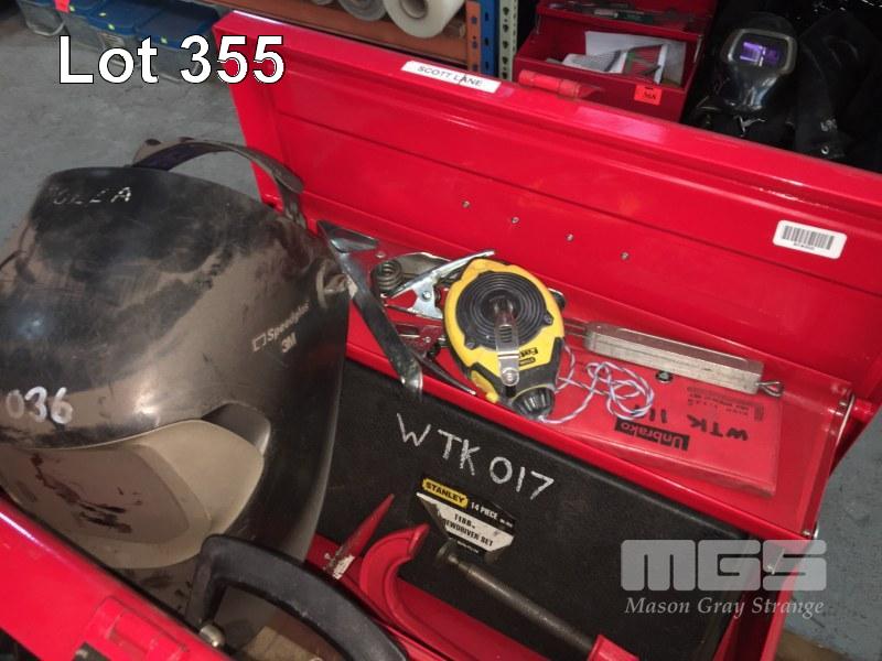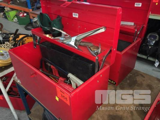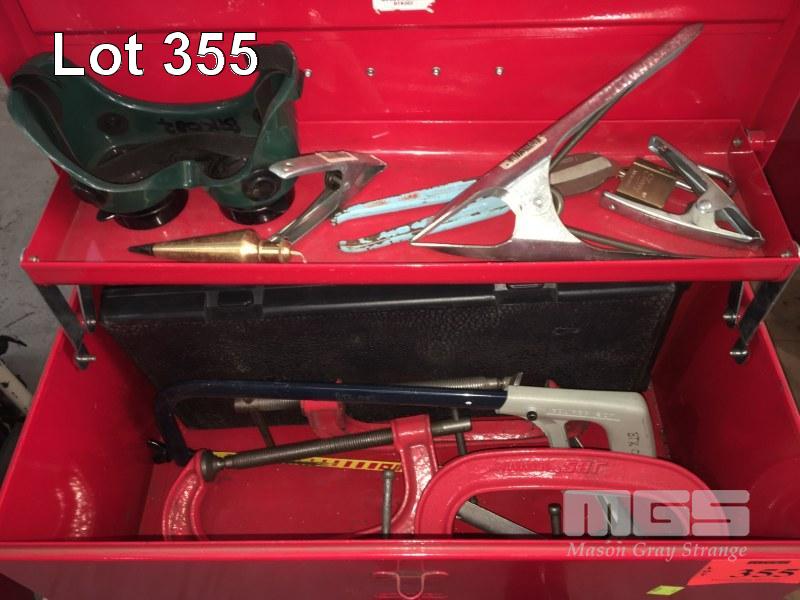 2 x TOOL BOXES & ASSORTED HAND TOOLS, INC SCREWDRIVER SETS, G-CLAMPS, HACK SAW, CUTTERS, ETC & AUTO TINT WELDING HELMET