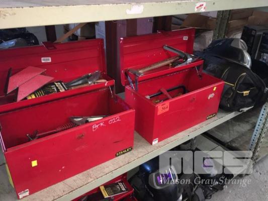 2 x TOOL BOXES & TOOL BAG WITH ASSORTED HAND TOOLS, 2 x SCREWDRIVER SETS, ETC & AUTO TINT HELMET