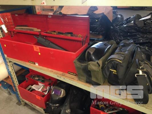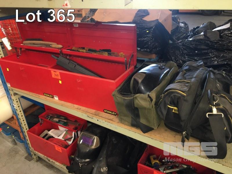 2 x TOOL BOXES & TOOL BAG WITH ASSORTED HAND TOOLS, 2 x SCREWDRIVER SETS, ETC & AUTO TINT HELMET