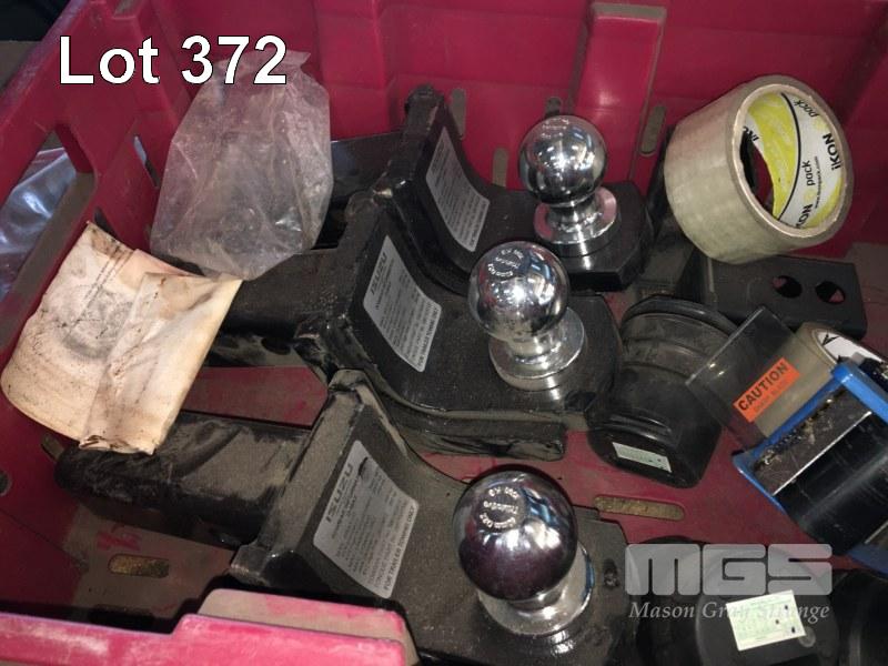 2 x LINIER BEARING ON RAIL, 3 x ISUZU BALL HITCHES, HAND TOOLS, ETC
