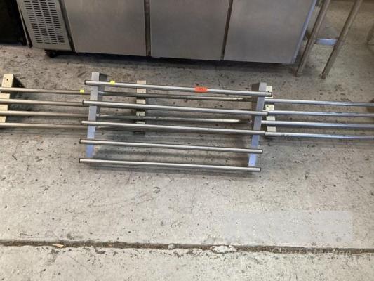 2 x STAINLESS STEEL PIPE POT RACKS, 90 & 240cm