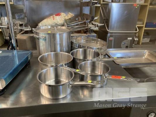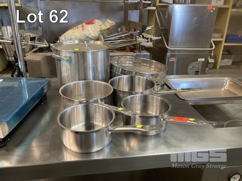 STAINLESS STEEL STOCK POT & 4 x STAINLESS STEEL SAUCEPANS