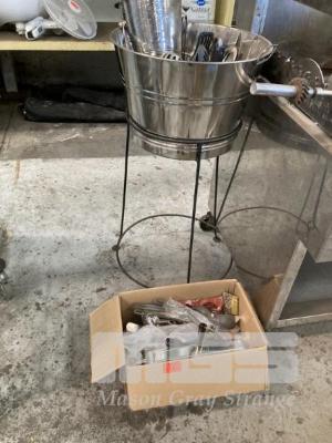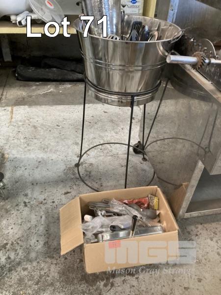 ICE BUCKET STAND & ASSORTED KITCHEN UTENSILS