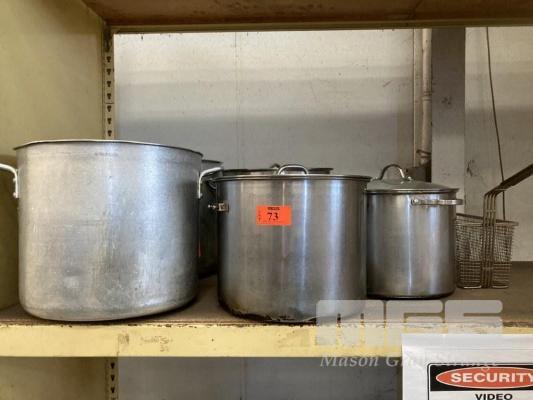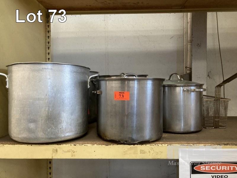 5 x STOCK POTS & LIDS (2 x ALUMINIUM, 3 x STAINLESS STEEL)