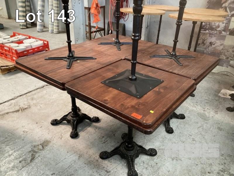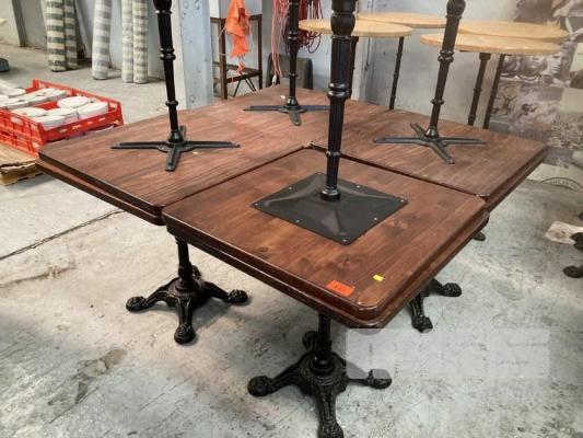 8 x CAFE TABLES, 75 x 75cm SOLID TIMBER TOP, CAST IRON BASE