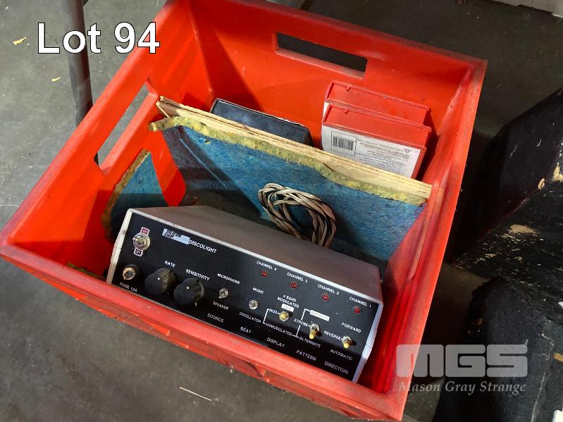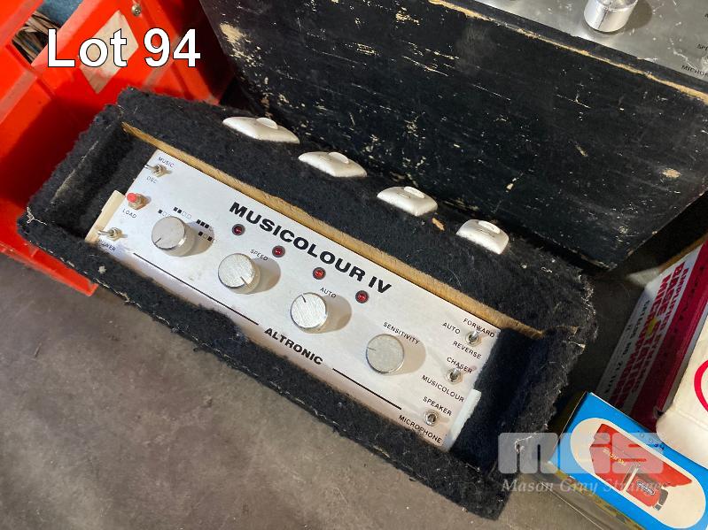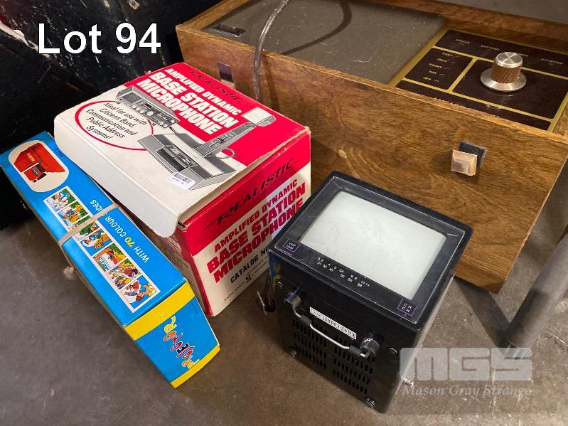 ASST REALISTIC AMPLIFIER DYNAMIC BASE STATION MICROPHONE, AMGARD SYSTEM ALARM OONTROL UNIT, ALTRONIC MUSICOLOUR IV CONTROLLERS, DISCOLIGHT CONTROLLER ETC