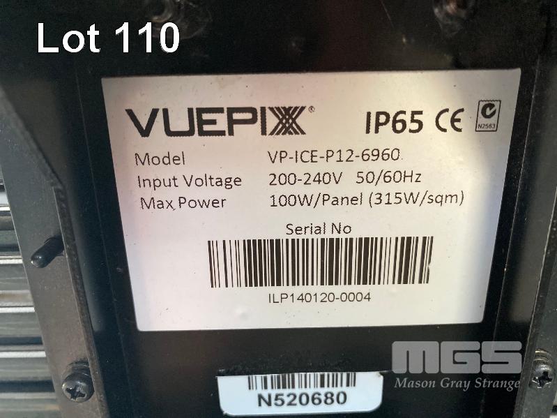 150 x VUEPIX E SERIES MESH DISPLAY LED PANELS, MODEL VP-ICE-P12-6960, EACH 800 x 385mm WITH 8 x MOBILE ROAD CASES & CABLES, 10 x FLYBARS IN 2 x MOBILE ROAD CASES, 2 x VUEPIX T7e SENDER UNITS, 1 x COLORLIGHT LED iQ7 HD SENDER, 2 x DATA TRANSMISSION UNITS, 2 x VUEPIX DISTRIBUTOR 701, 4 x VUEPIX Q7e SENDER UNITS