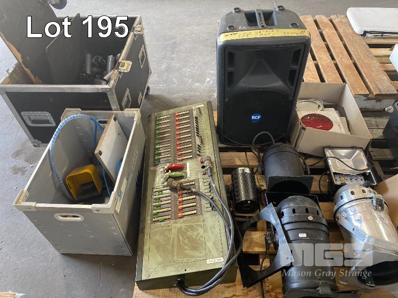 1 x PALLET INC LIGHTING, FAULTY SPEAKER, CONSOLE, DAMAGE ROAD CASE ETC