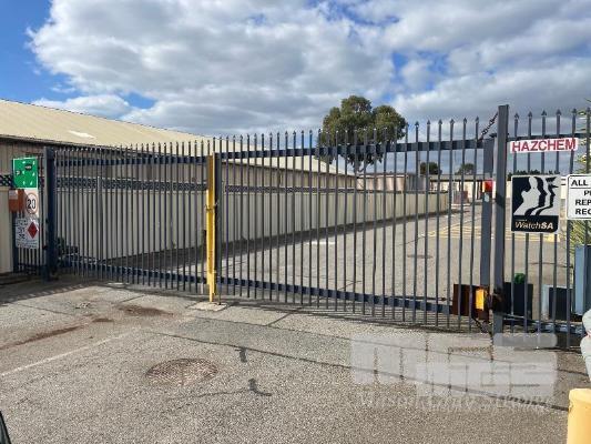 COMMERCIAL ELECTRIC GATE SET OPENING INWARDS 2 x 4 x 2.1m BOX STEEL GATES 2 x CHAIN DRIVE 415V OPENING MOTORS 2 x 100 x 100mm POSTS & SIDE PANELS