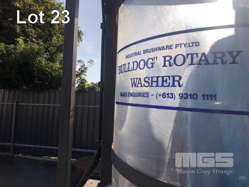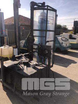 BULLDOG ROTARY WASHER, INDUSTRIAL BRUSHWARE CO FORKLIFT MOUNT WITH CONTROL HYDRAULIC DRIVE POLY TANK, 400 LITRE APPROX WITH SUDS ADD PROVISION 2m ROTARY BRUSH WITH SEE THROUGH GUARD