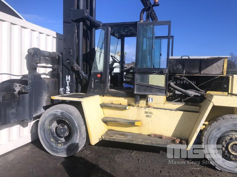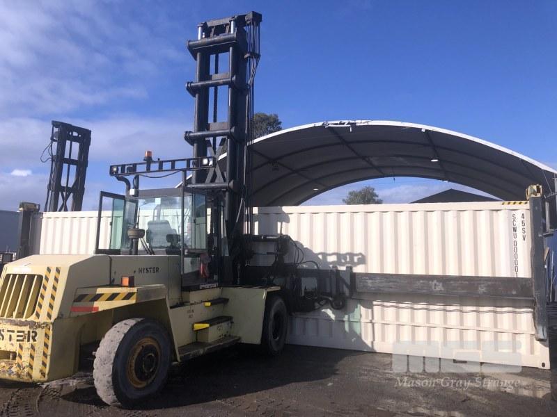 HYSTER XL16 FORKLIFT MOD: H16.00XL-EC4 FITTED WITH 40' SIDE LIFT CONTAINER FRAME TELESCOPIC, LOAD HEIGHT: 9910mm PERKINS 6 CYLINDER DIESEL ENGINE HOURS: 03095 SHOWING ENCLOSED CAB, AUTO TRANS, AIR TYRES, A/C S/NO: D019E01645RS MAX LOAD 7,000kg @ 1220mm CENTRES SOLD IN SITU (LOCATED AT WINGFIELD, INSPECT BY APPT JOHN FUSS 0412 694 852)