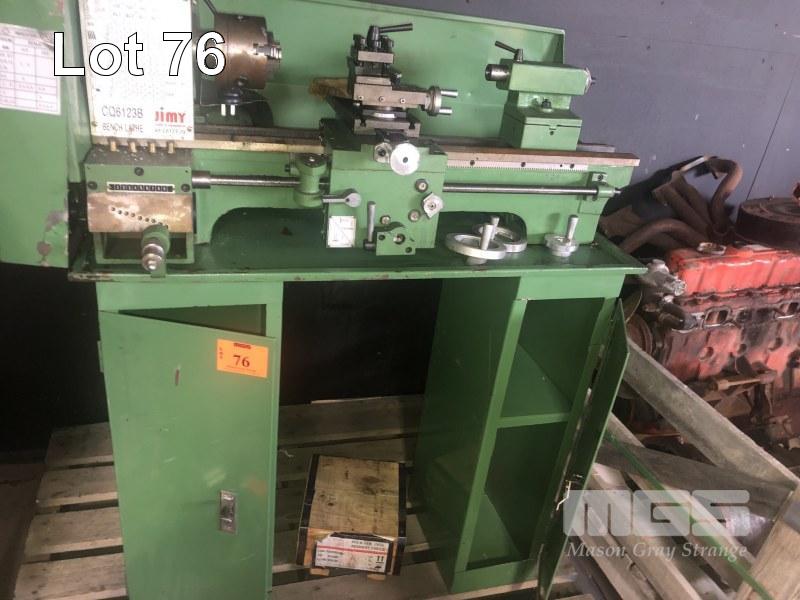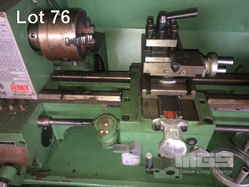 JIMY PRECISION LATHE (DROPPED) MOD: CQ6123B 240V BROKEN HANDLES, SIDE COVER DAMAGE HEAD & BACK STOCK HANDLES WITH FACE PLATE & 4 & 3 JAW CHUCK ONLY