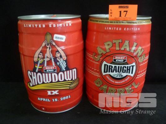 2 x WEST END CAPTAINS LIMITED EDITION 5 LITRE BEER BARRELS (EMPTY)