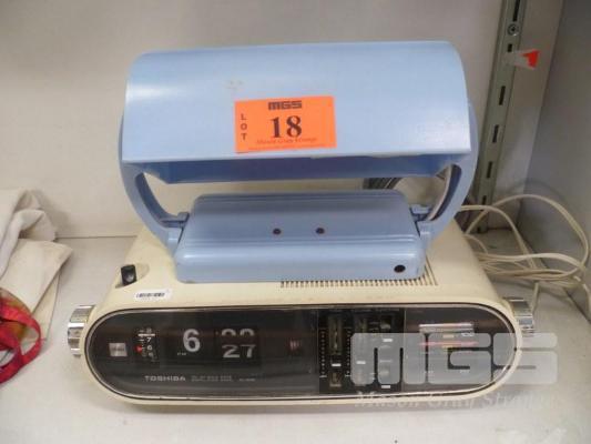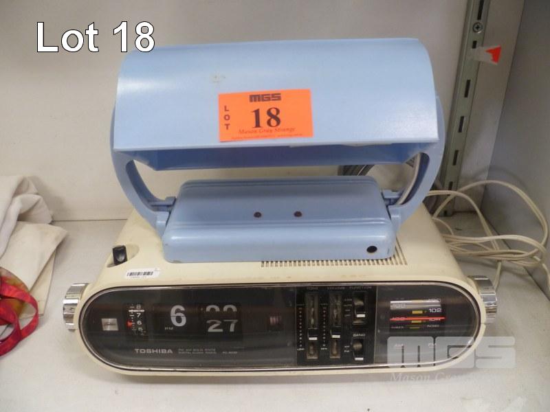 TOSHIBA RETRO FLIP CLOCK RADIO, RC-803F & BLUE DUPERITE BEDHEAD LAMP