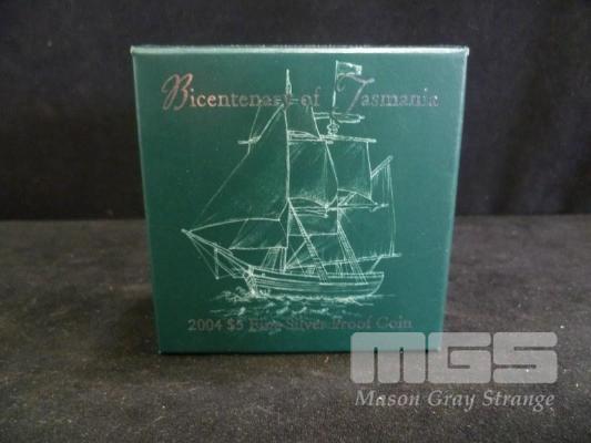 2004 PROOF 1 TROY OZ FINE SILVER COIN "TASMANIA BICENTENARY" IN DISPLAY BOX