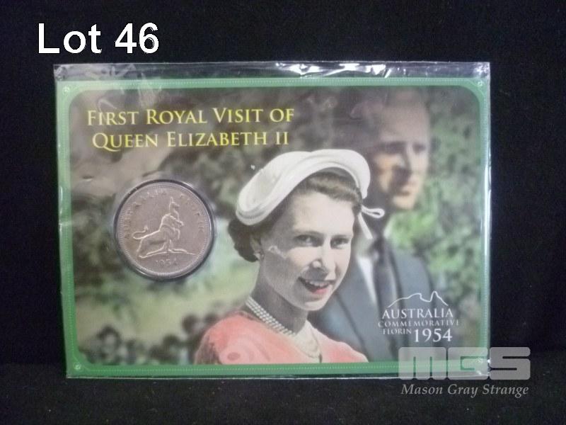 1954 QUEENS VISIT AUST FLORIN ON DESCRIPTIN CARD