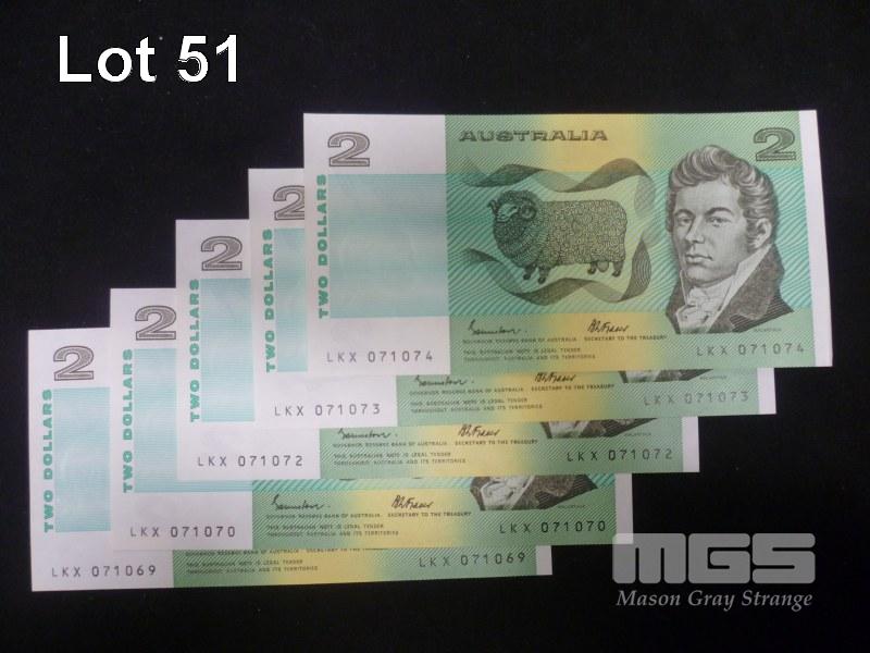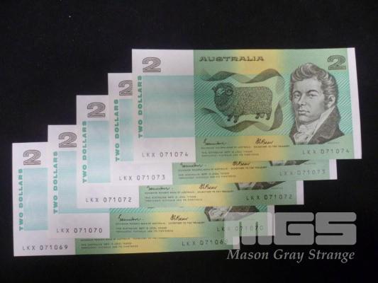 1985 5 x $2.00 NOTES CONSECUTIVE RUNS, (071 MISSING)JOHNSTON FRAZER UNC