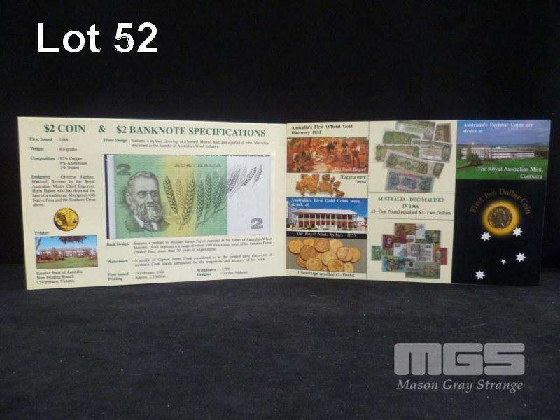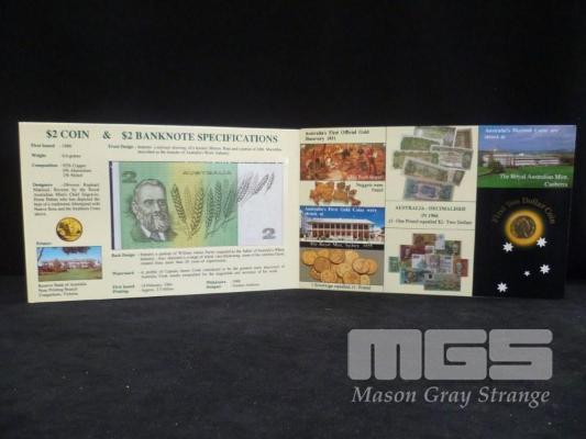 1985 LAST $2.00 NOTE AND 1ST 2 DOLLAR COIN IN FOLDER UNC