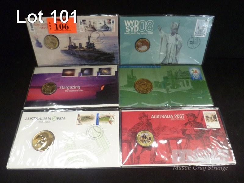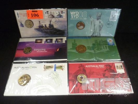 6 X PNC, COIN/STAMP COVERS, INC; ROYAL AUSTRALIAN NAVY, AUSTRALIAN OPEN 1905-2005, AUSTRALIA POST 200 YEARS, XVIII COMMONWEALTH GAMES MELBOURNE, STARGAZING THE SOUTHERN SKIES, WORLD YOUTH DAY SYDNEY 2008
