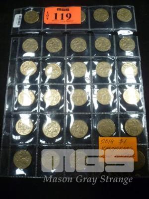 30 X AUSTRALIA 2014, $1, COINS, KANGAROOS, LOW MINTAGE