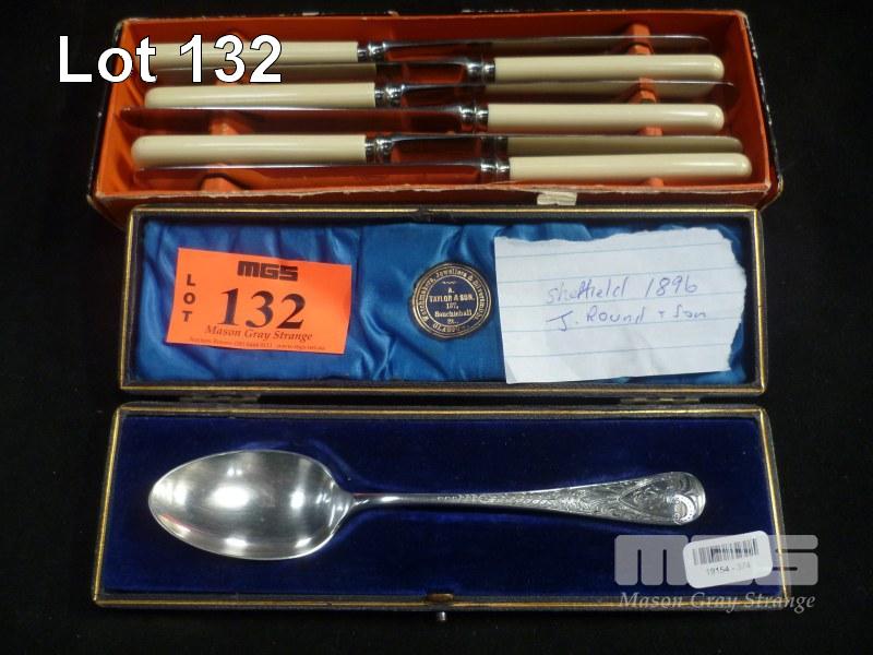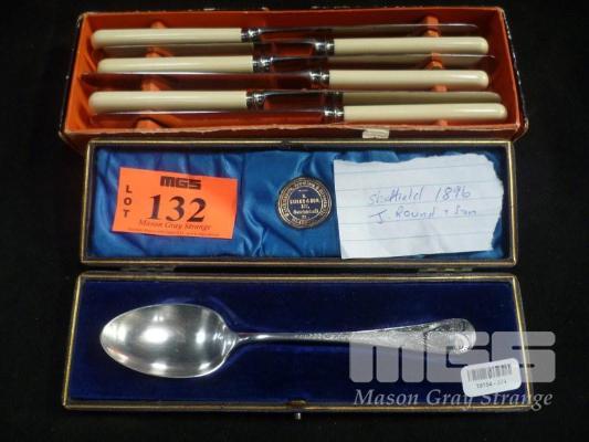 CASED SILVER SPOON SHEFFIELD 1896 & JAMES DIXON CASED KNIVES, SHEFFIELD ENGLAND CUTLERY