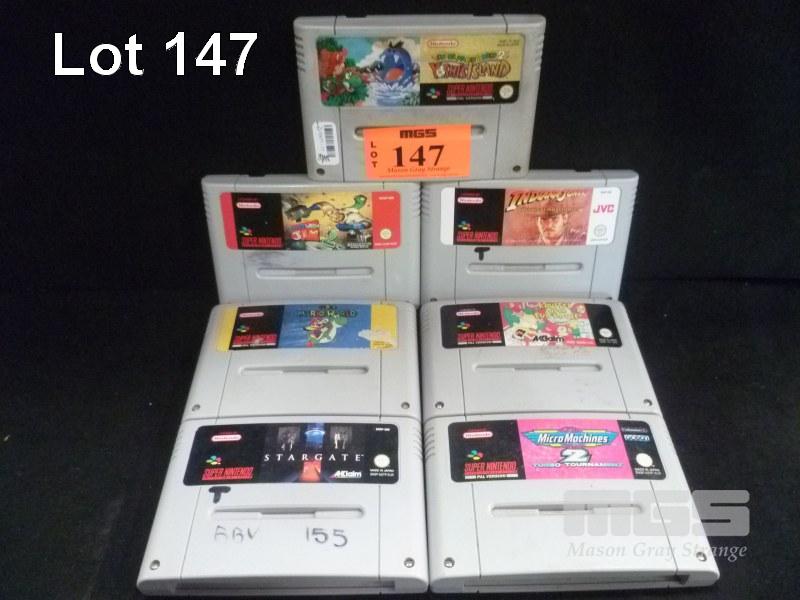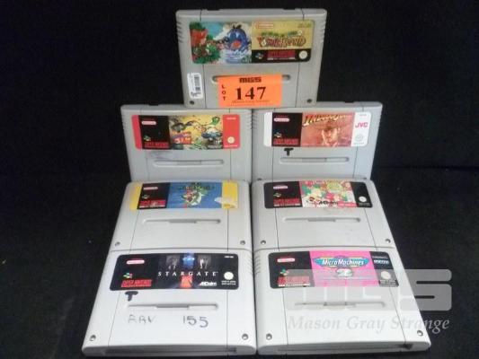 7 x SUPER NINTENDO ENTERTAINMENT SYSTEM (SNES) GAME CARTRIDGES INC SUPER MARIO WORLD, MICRO MACHINES, EARTH WORM JIM , ETC