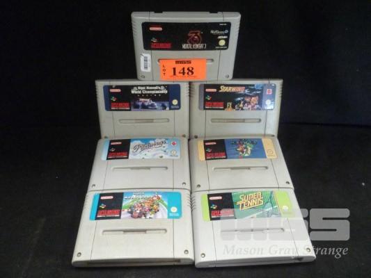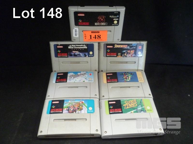 7 x SUPER NINTENDO ENTERTAINMENT SYSTEM (SNES) GAME CARTRIDGES INC SUPER MARIO KART, SUPER MARIO WORLD, MORTAL COMBAT 3, ETC