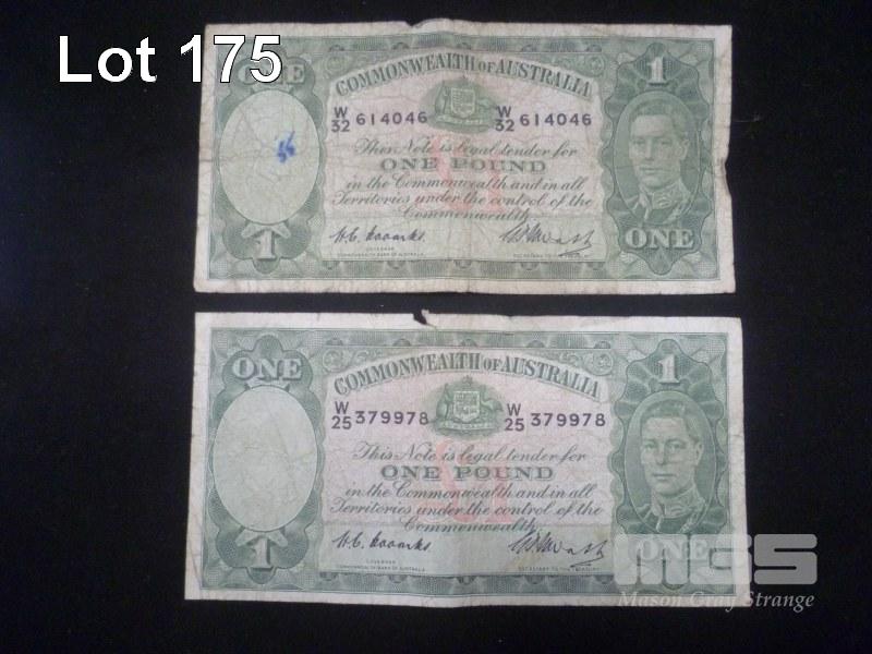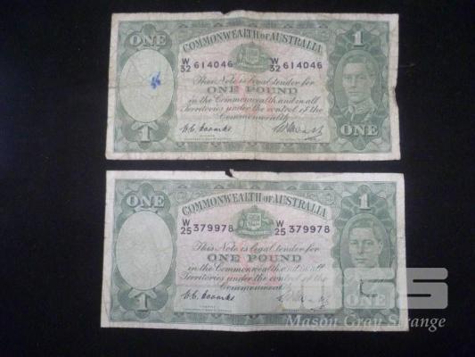 2 X COMMONWEALTH OF AUSTRALIA, ONE POUND, PAPER BANKNOTES, COOMBS/WATTS