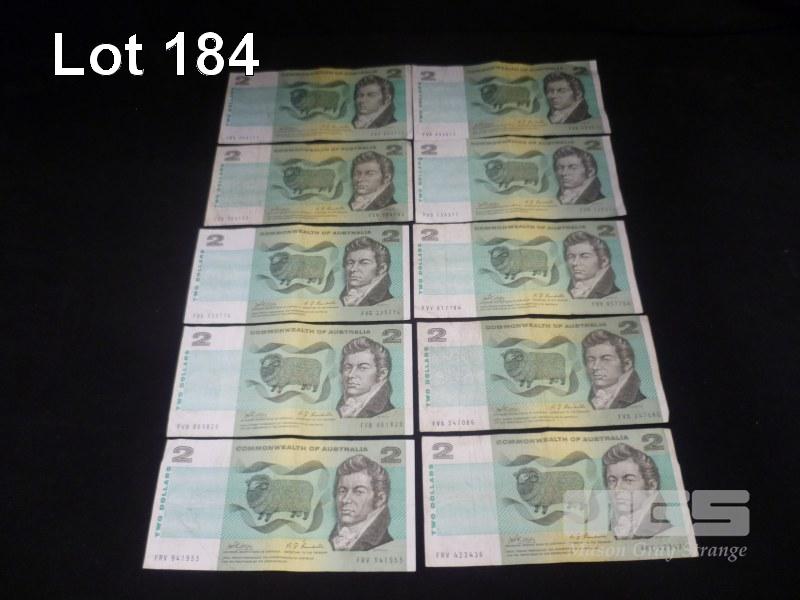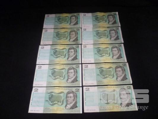 10 X COMMONWEALTH OF AUSTRALIA, $2 PAPER BANKNOTES, PHILLIPS/RANDALL