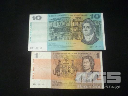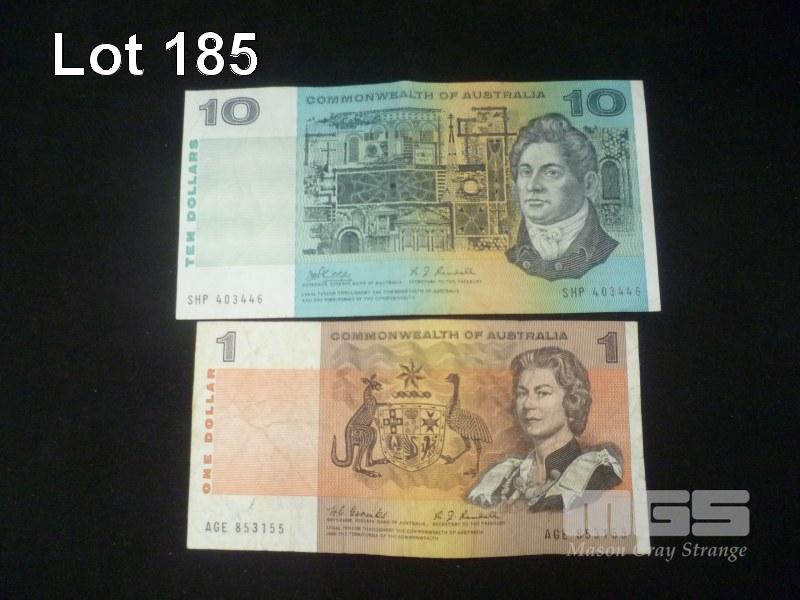 COMMONWEALTH OF AUSTRALIA, $1 PAPER BANKNOTE, COOMBS/RANDALL & COMMONWEALTH OF AUSTRALIA, $10 PAPER BANKNOTE, PHILIPS/RANDALL