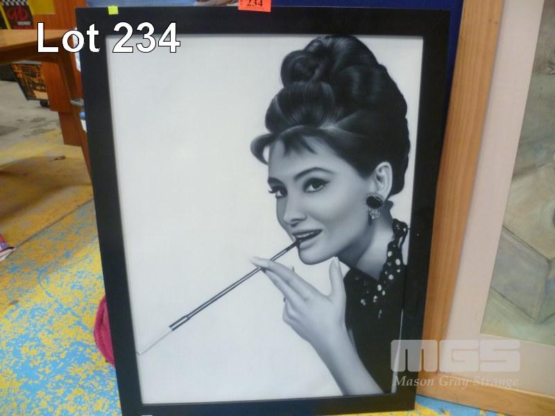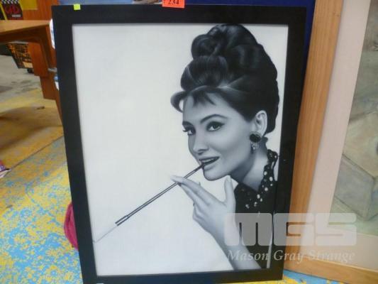 ACRYLIC ON CANVAS PAINTING, "AUDREY HEPBURN", 90 x 70cm