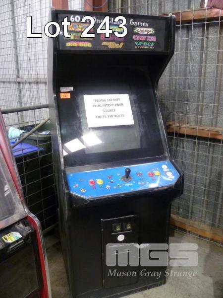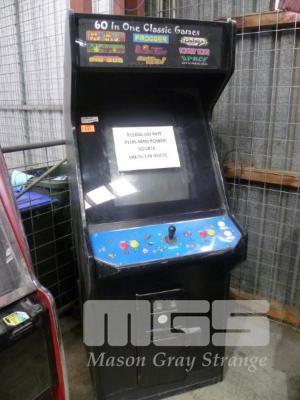 60 IN ONE CLASSIC UPRIGHT ARCADE GAME, WORKING, DULL SCREEN, 110V WITH NEW TRANSFORMER TO 240 VOLT INCLUDED