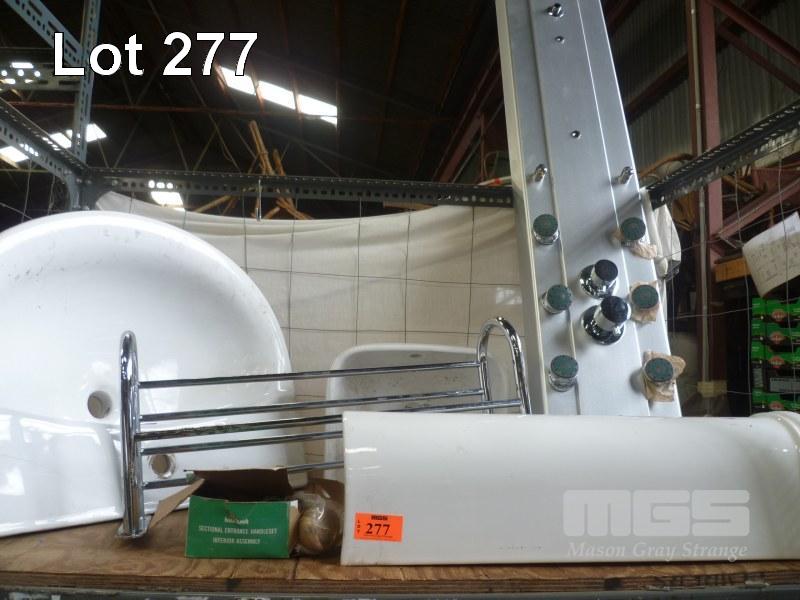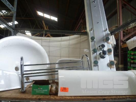 HAND BASIN, SHOWER ASSEMBLY, TOWEL RAIL, PEDESTAL & 2 x HAND DRYERS