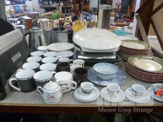 KITCHEN APPLIANCES INC, SANDWICH PRESS, GEORGE FOREMAN GRILL, TOASTER & KETTLE, POPCORN MACHINE, CERAMICWARE INCLUDING PLATES CUPS & BOWLS