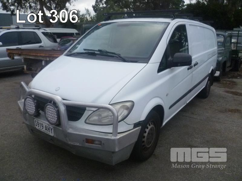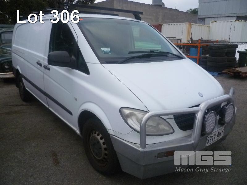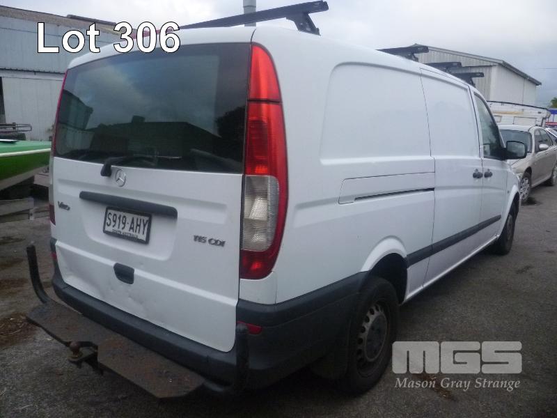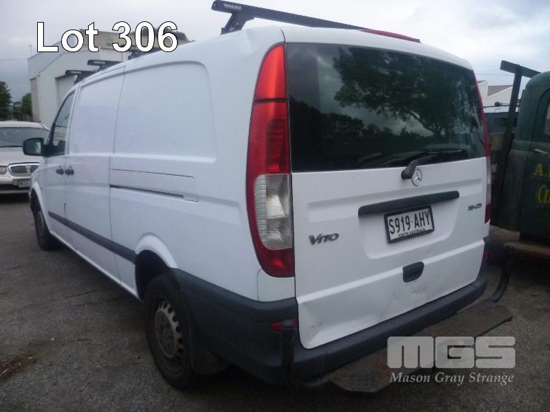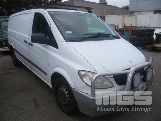 2010 MERCEDES BENZ VITO NCV2 VAN REG: S919 AHY VIN: WDF63960523566331 ENG: 64698051807308 ODO: 333,575kms SHOWING 115 CDI 4 CYLINDER, AUTOMATIC TRANSMISSION, TURBO DIESEL, WHITE DUCO, 5 DOORS, 2 SEAT, 4x2 ABS, AIR BAG, AIR CON, CARGO BARRIER, CD PLAYER, CENTRAL LOCKING, CRUISE CONTROL, IMMOBILISER, POWER STEERING, POWER WINDOWS, ROOF RACKS, SPARE WHEEL, TOW BAR, ALLOY BULL BAR LED SPOT LIGHTS GVM: 2,940kg KEY #5 (WITH PAPERS, WITH 1 KEY/S)