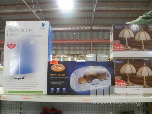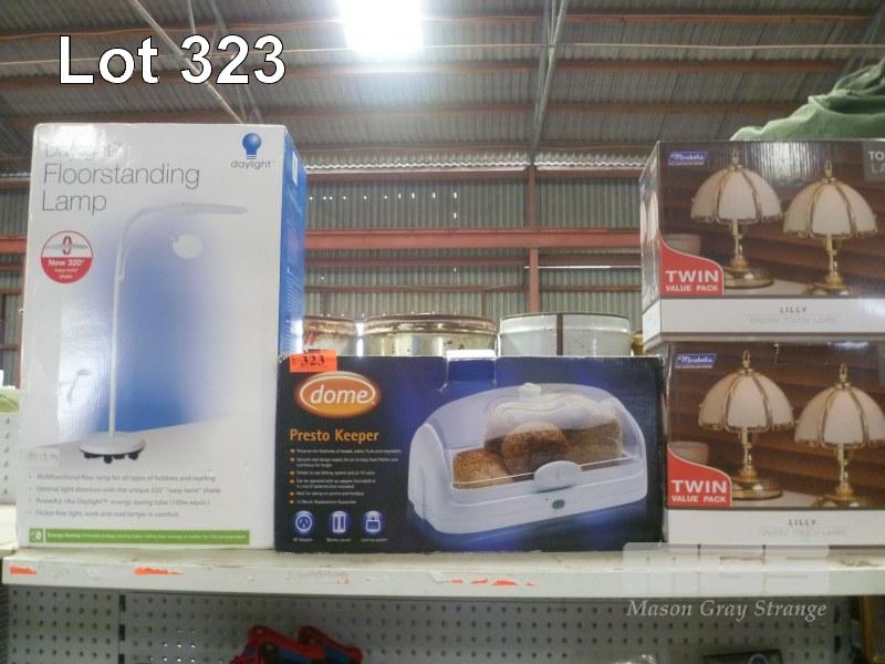 3 x TABLE LAMPS & BREAD BOX, NEW